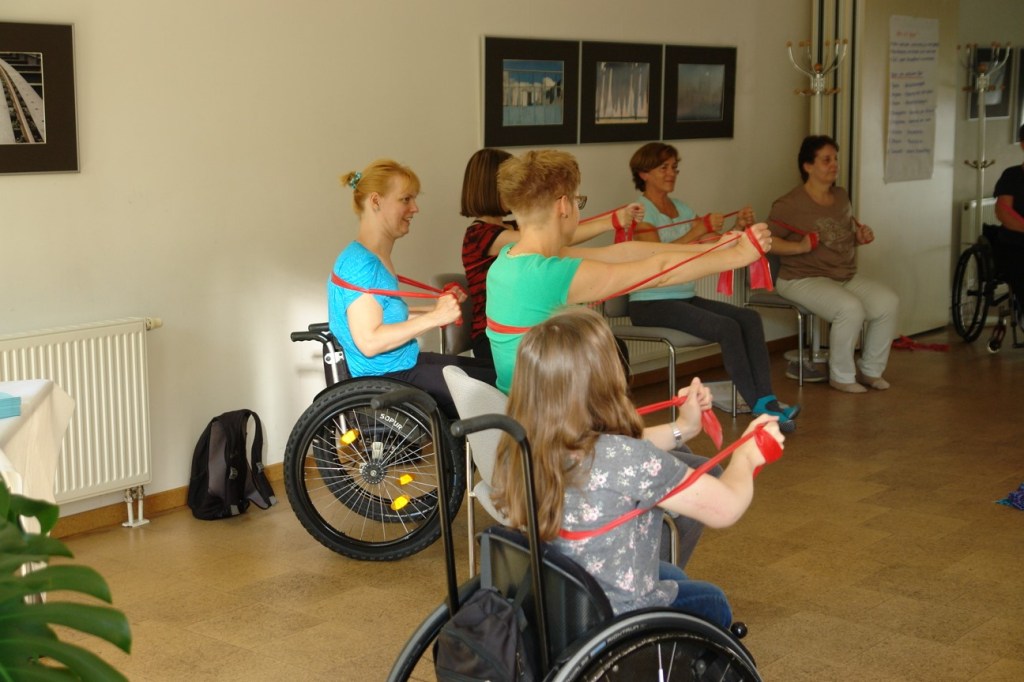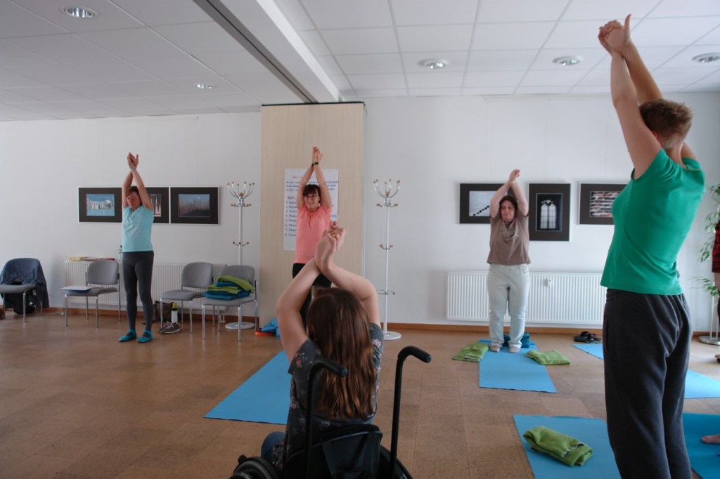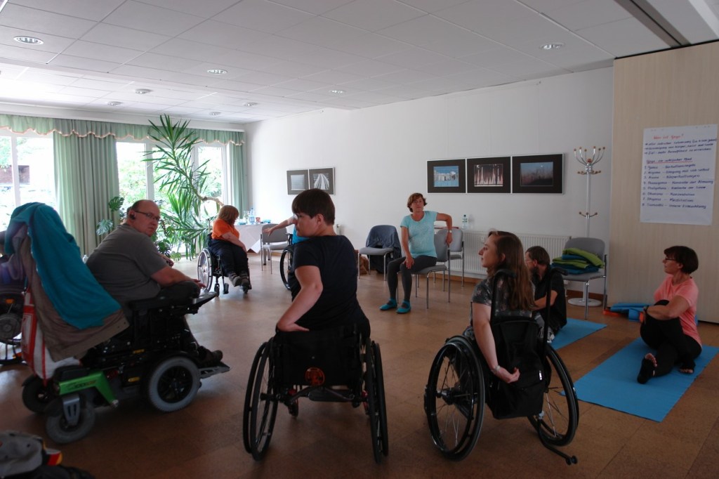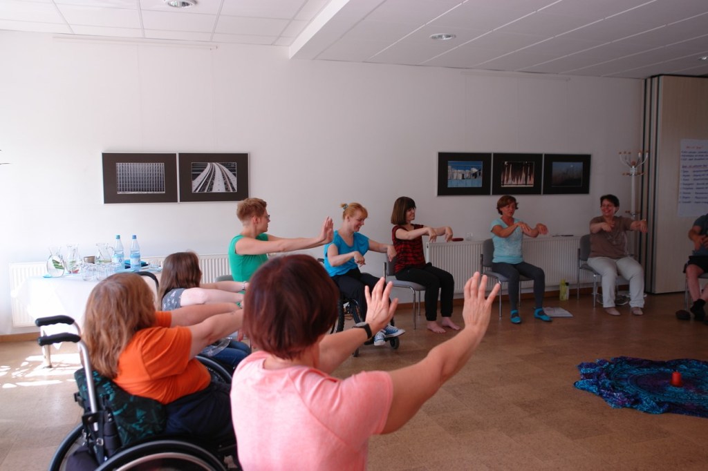 Im Juli 2017 fand der eintägige Schnupper-Workshop für Rollstuhlnutzer/innen und deren Begleitpersonen statt, die Interesse an der Bewegung und am Erlernen von Atem- und Entspannungsübungen haben. Der Workshop wurde durch den Verein Mit-Mensch e.V. organisiert und konnte dank der Unterstützung durch die Krankenkasse AOK durchgeführt werden.